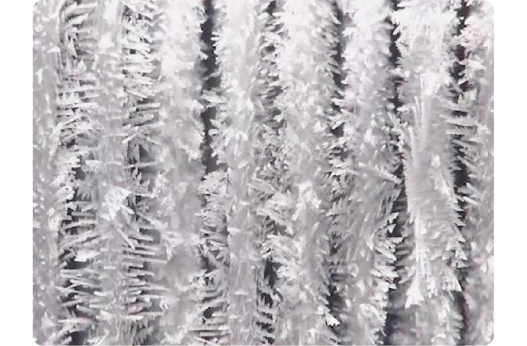 急速冷卻空氣中水分,在熱交換器周圍形成凝霜并鎖住污垢灰塵,迅速溶解化水后將污垢灰塵帶走。